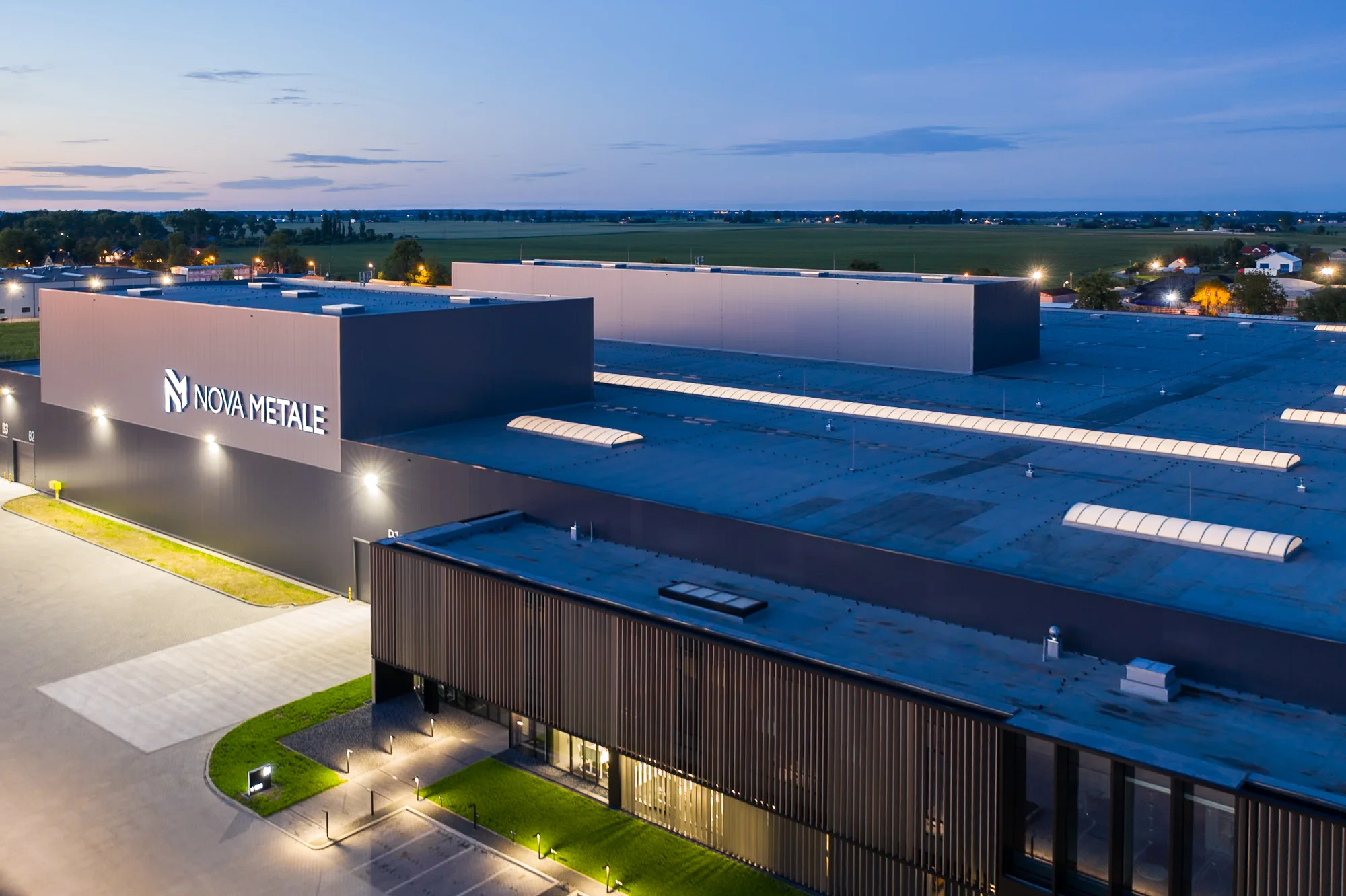 Siedziba Nova Metale – nowoczesny budynek biurowy i część produkcyjna w spójnej architekturze.