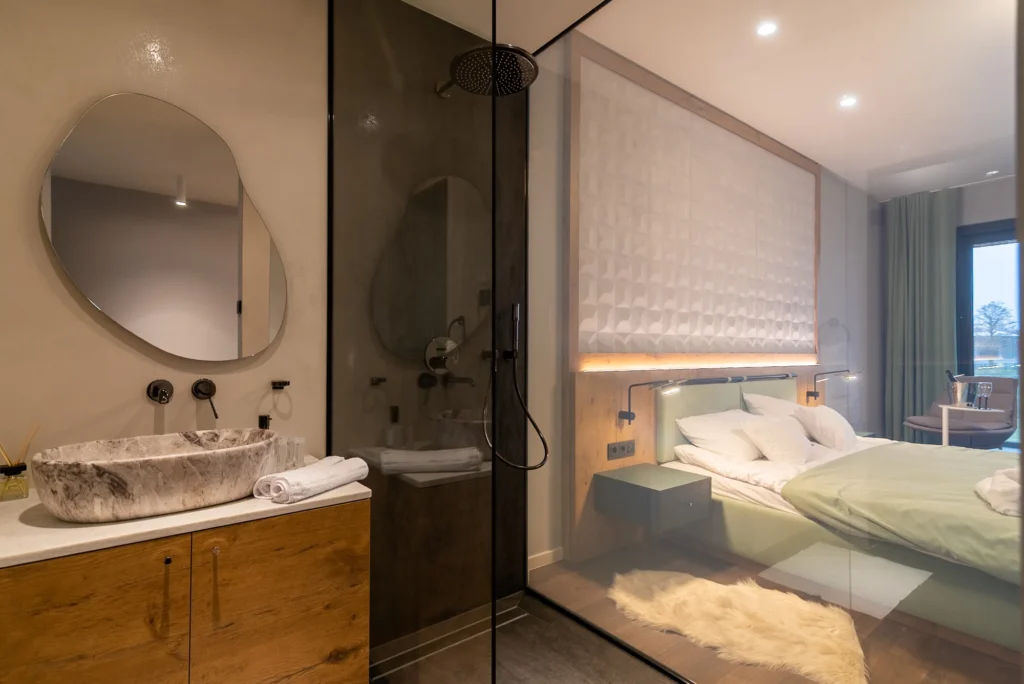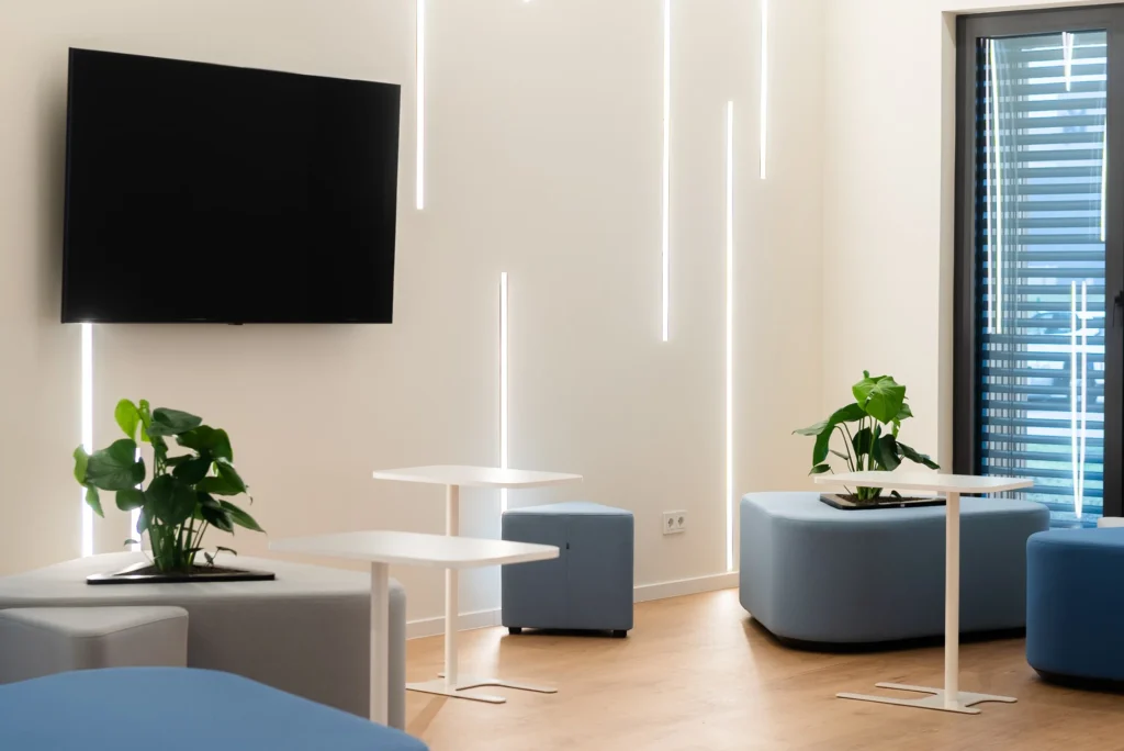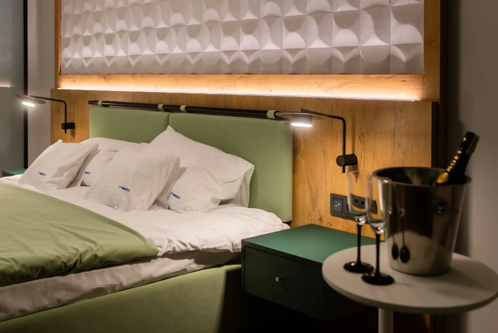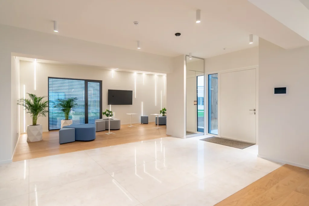 Zdjęcia miały pokazać szeroki zakres budownictwa modułowego. Showroom klienta pokazuje, że w tej technologii można przygotować np. pomieszczenia biurowe, pokoje szpitalne czy hotelowe.