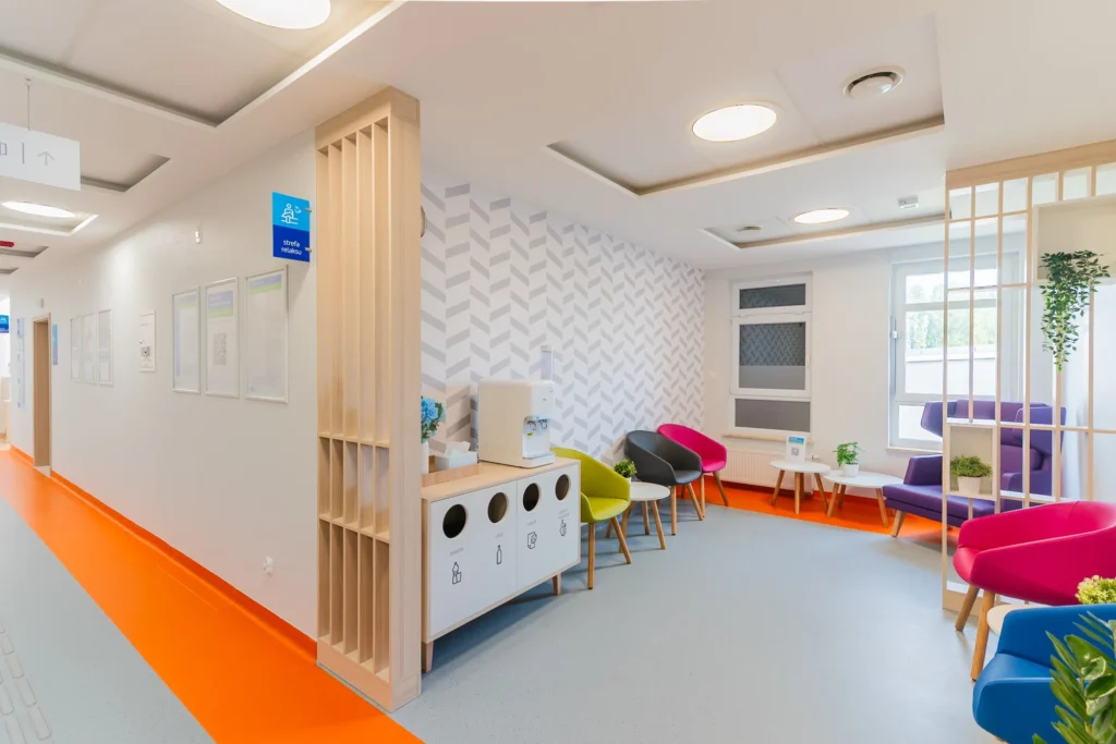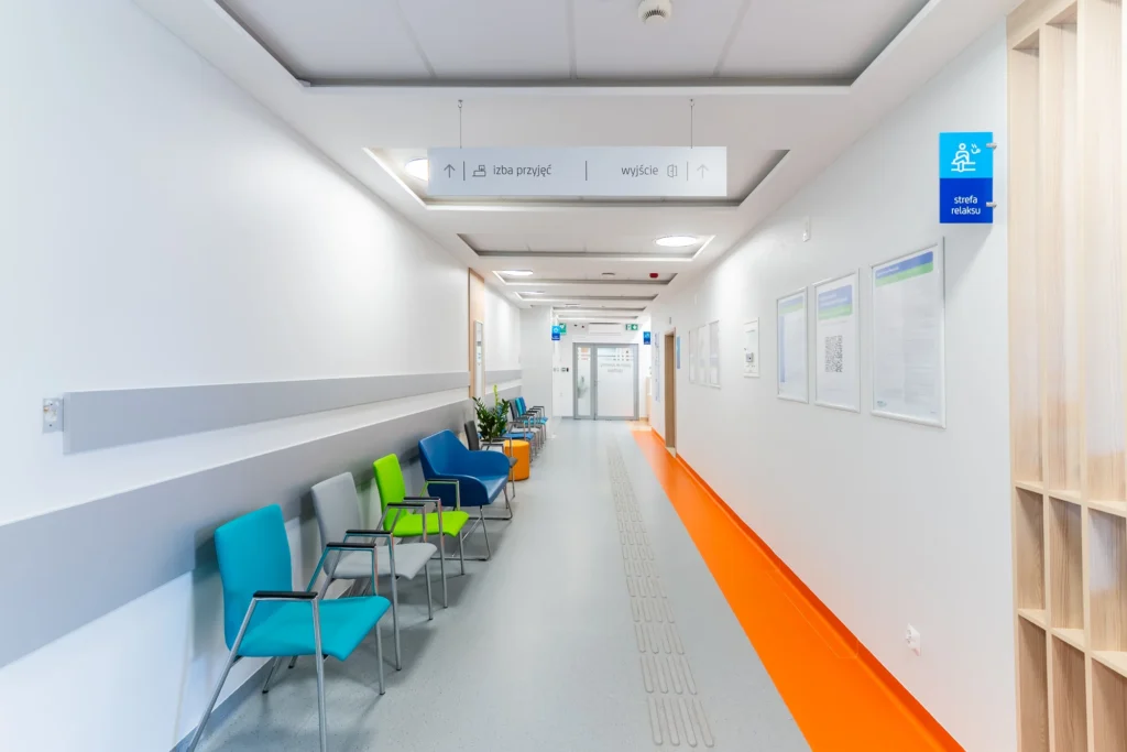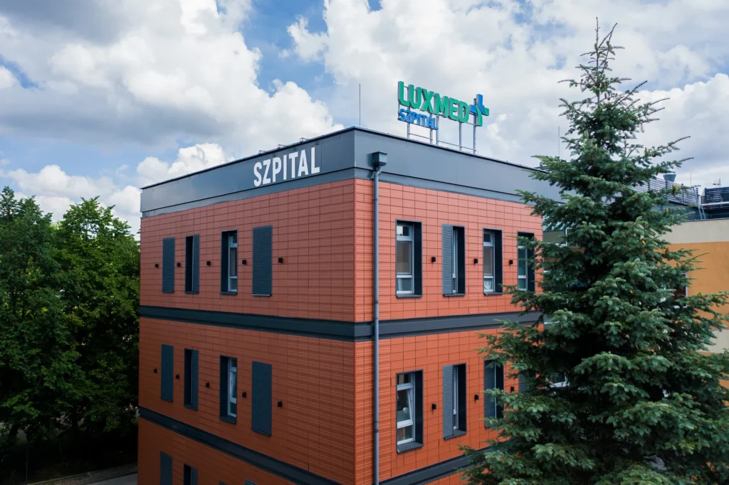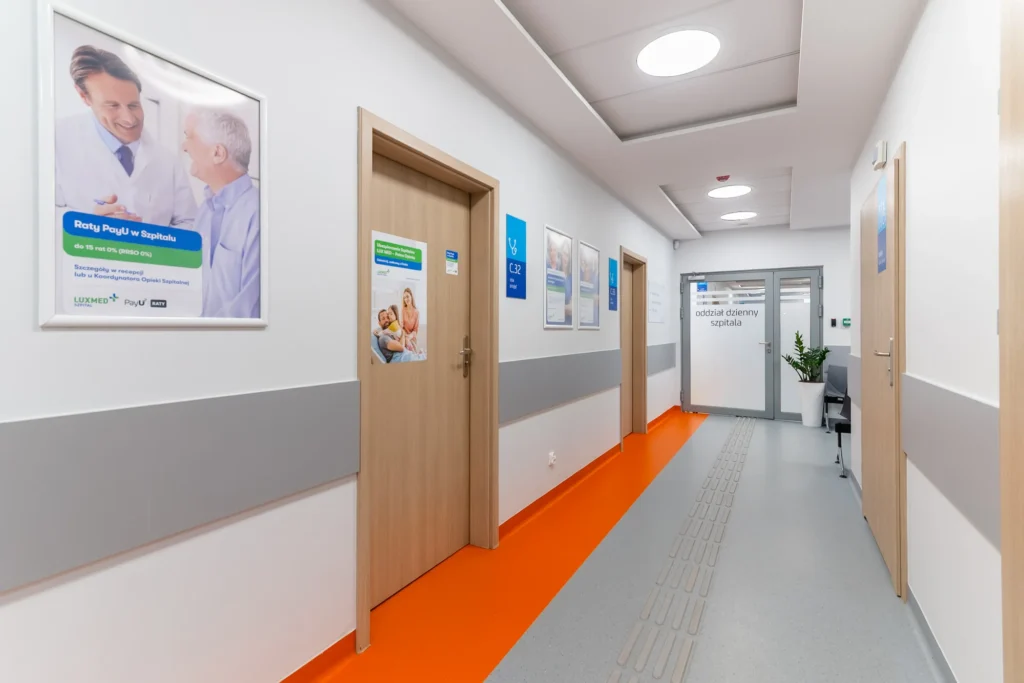Przestrzenie medyczne Luxmed w nowoczesnym stylu – sale operacyjne, korytarze, przestrzenie dla pacjentów.