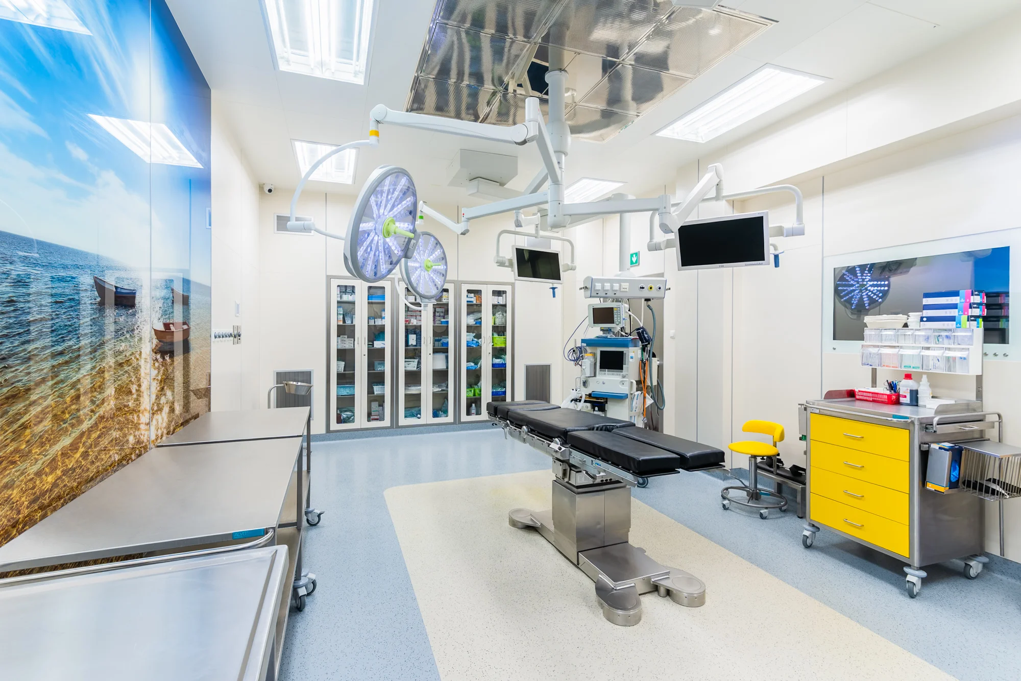 Przestrzenie medyczne Luxmed w nowoczesnym stylu – sale operacyjne, korytarze, przestrzenie dla pacjentów.